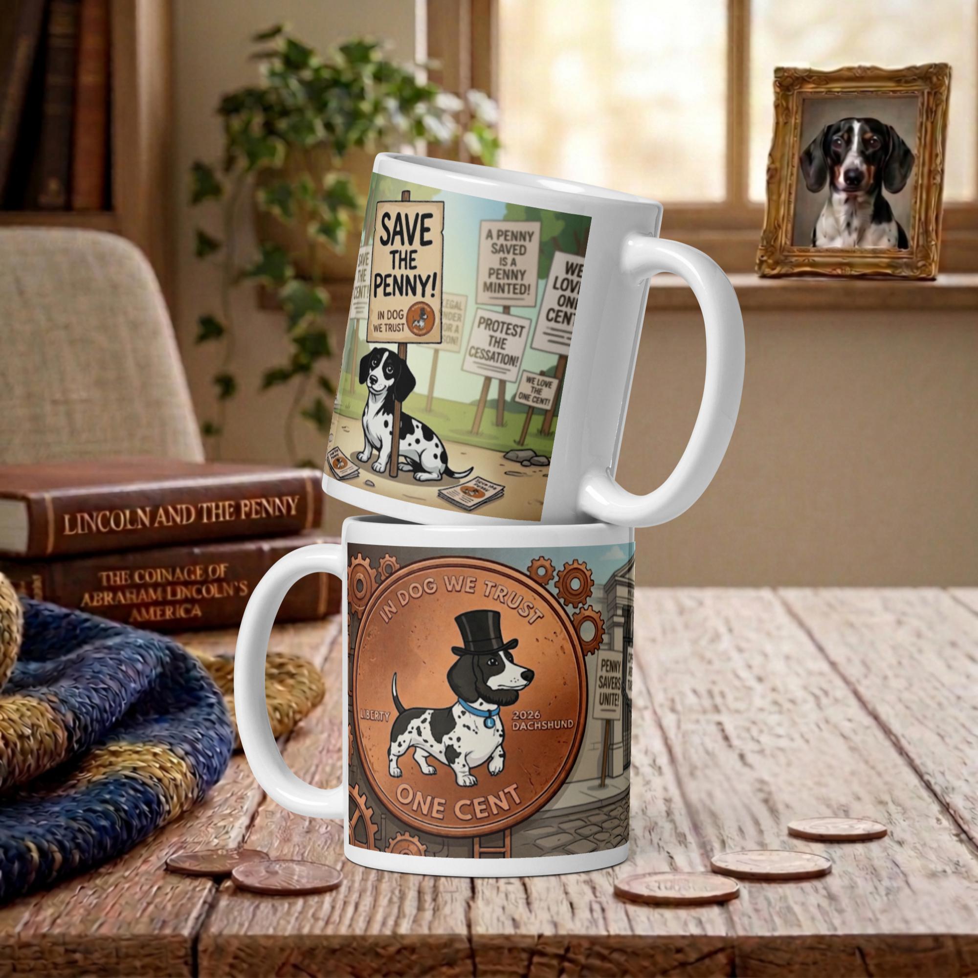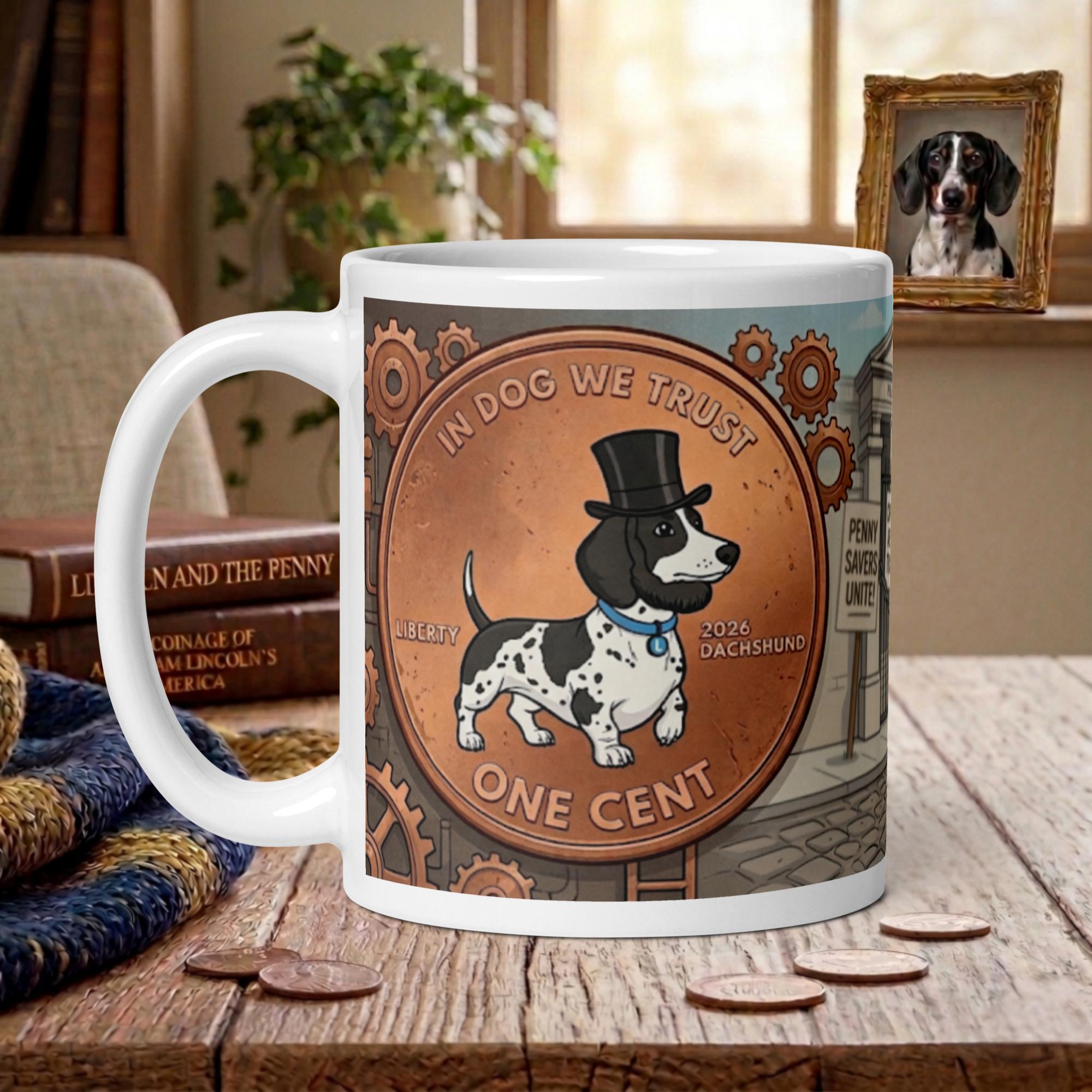 Celebrate the legacy of the copper cent with the most dapper dachshund in history. The Dachshund Penny 11oz Ceramic Mug brings a touch of presidential charm and canine wit to your morning coffee or evening tea.