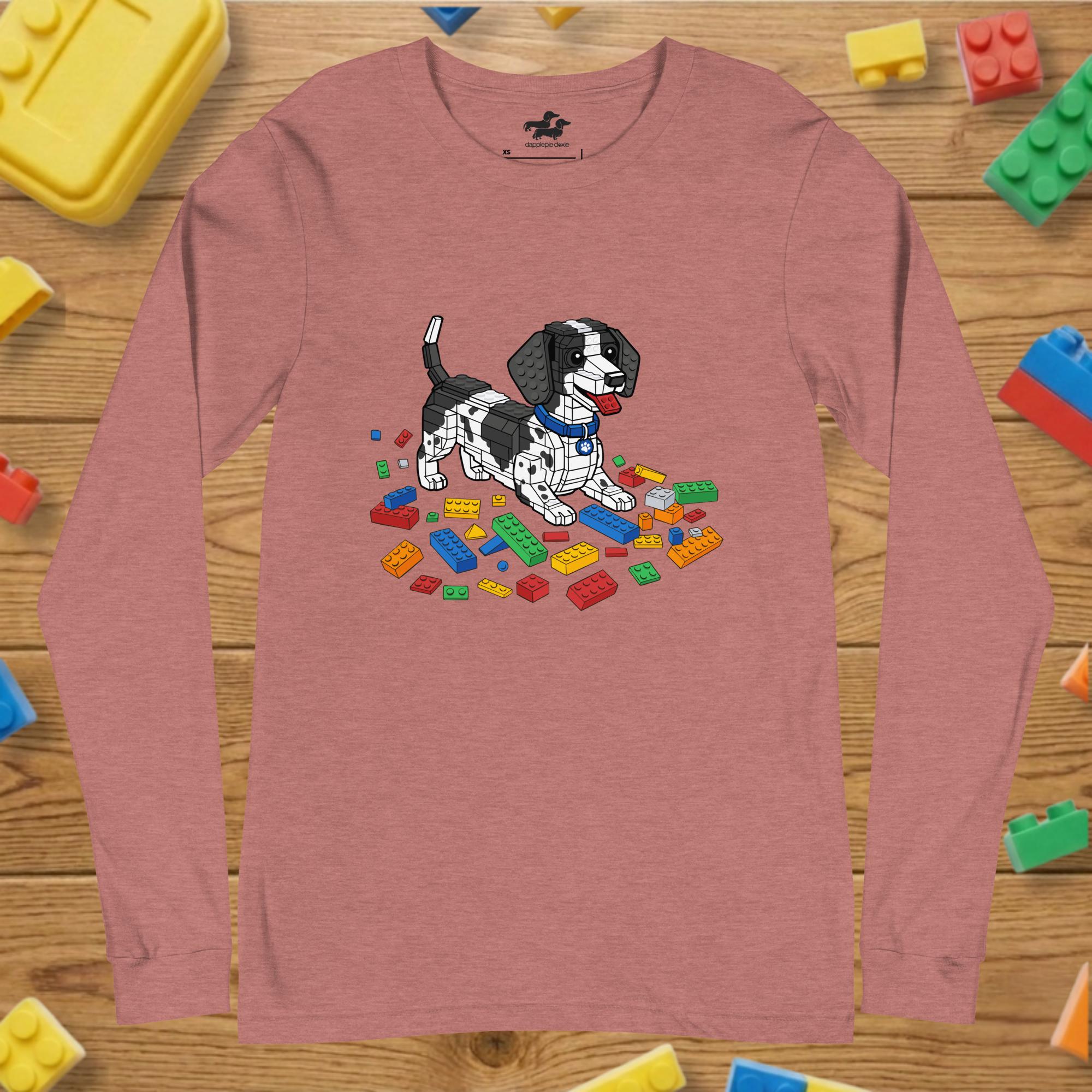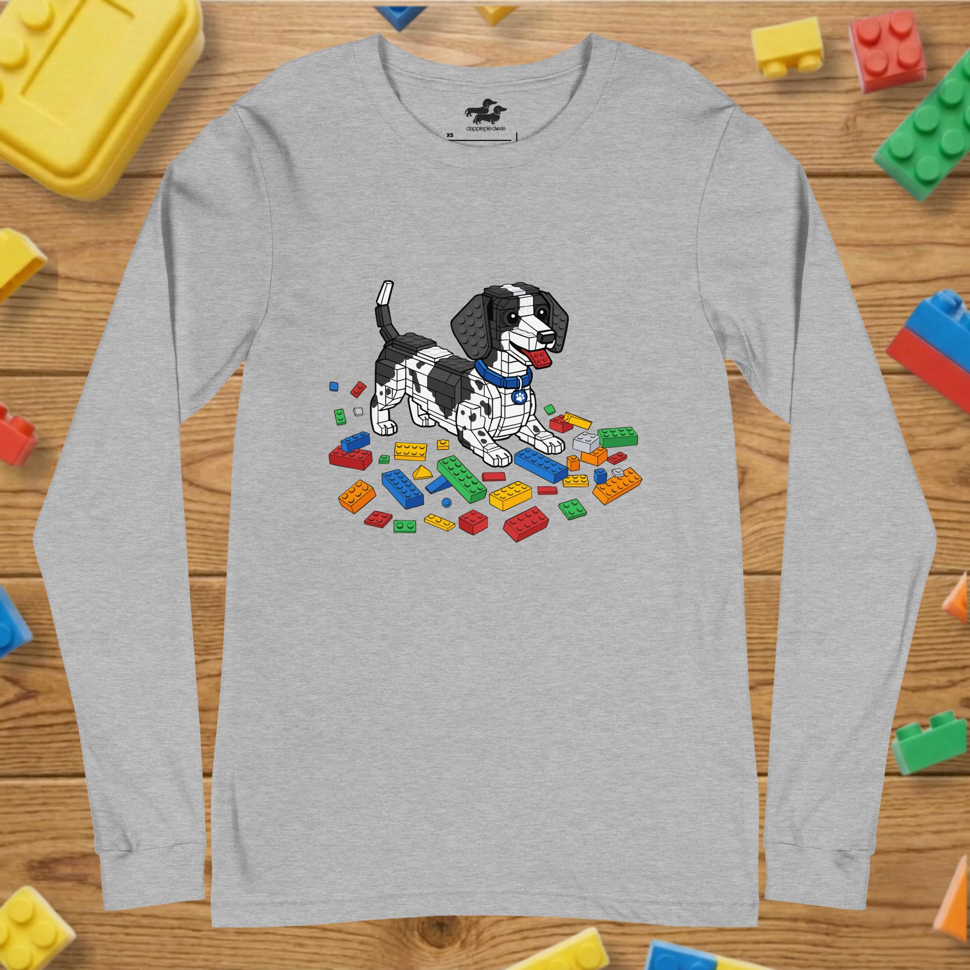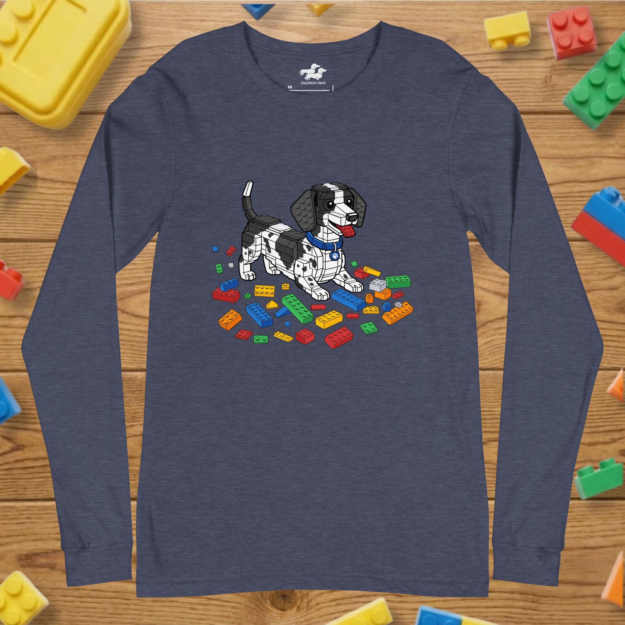 A nostalgic, unisex long sleeve tee featuring a clever dachshund “built” from colorful interlocking toy bricks. Perfect for Doxie lovers who appreciate a whimsical, retro aesthetic and premium, year-round comfort.